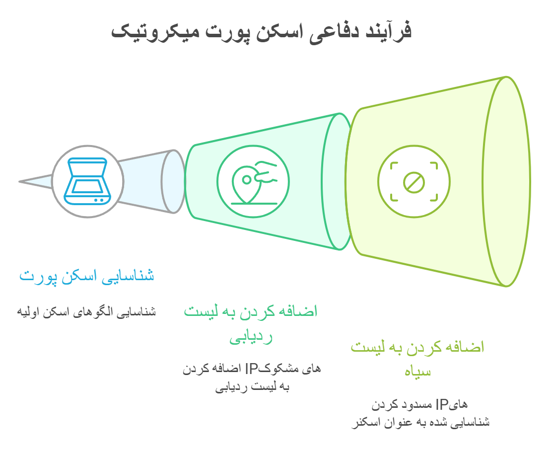 🔹 مکانیزم دفاعی میکروتیک در برابر Port Scanner (معماری سطح‌بندی شده)